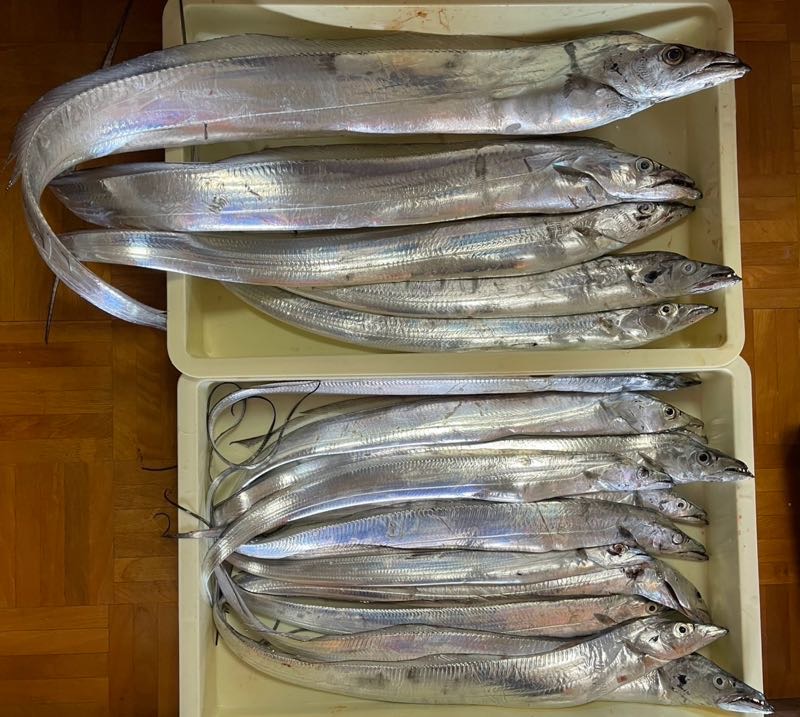 こんにちは、はっしーです!スタッフ廣本の船太刀魚釣行🎣今回は由良港『清花丸』さん‼️なんと指6本サイズのドラゴンタチウオが出ました🐉