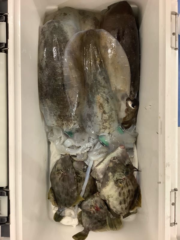 11月15日の持ち込み釣果🦑洲本沖でのティップランエギングとカワハギ釣りをされたそうですアオリイカは良型が揃っています!!エギは、ウロコのウロコロUTRシンカーなしで水深15mほどの浅場で風に流して釣ったとの事まだまだ岸近くにアオリイカ回遊ありますよ撮影ご協力ありがとうございました😭店長