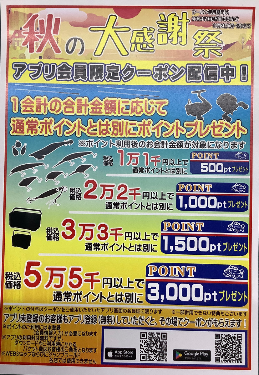 赤穂店の菊池です。秋の大感謝祭セール開催中です!