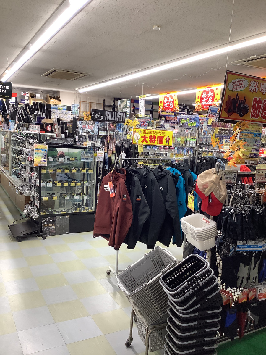 防寒用品コーナー設置秋のSWシーズン向けたタックルも豊富に取り揃えて皆様のご来店をお待ちしております‼️