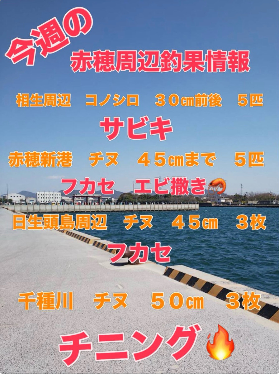 赤穂店の細井です。今週の釣果情報をお届け致します。