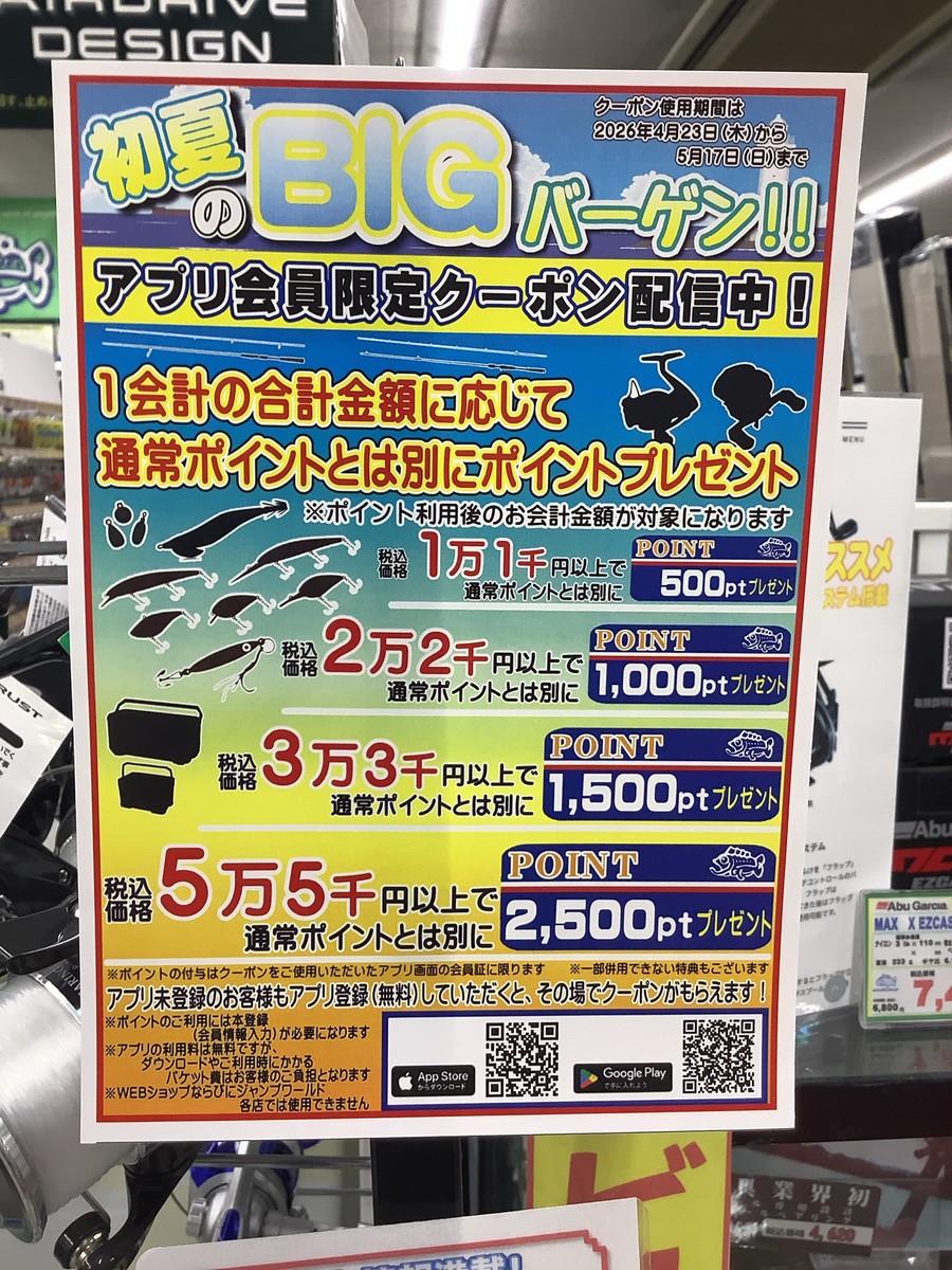 アプリ会員様限定クーポン配信中会員登録もその場で簡単!是非ご来店下さいませ♪