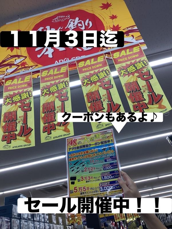 シンペン等でもアタリありましたが、デビルテールが良い感じでした🙆♂️雨後などは特にチャンス!大型シーバスも出てますのでぜひ狙ってみてください!11月3日までセール開催中、クーポンも配信されております♪※釣り場のルールは守りましょう、ゴミは必ず持ち帰りましょう。