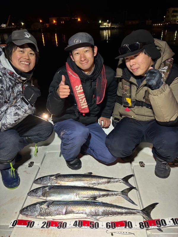 こんにちは!スタッフ佐竹です。先日、西舞鶴店佐竹・長谷川、福知山店田仲でブレードジギングに行って来ました。各船釣れてる良い日に当たったようで、夕方1時間半程で釣果出せました!