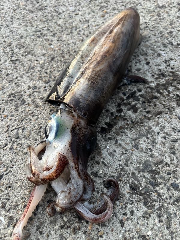 また、夜に少しだけアジの泳がせ釣りをしたら、アオリイカやサメが釣れました!